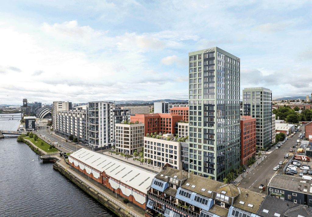 An 8-storey residential development on Minerva Street in the Finnieston area of Glasgow.