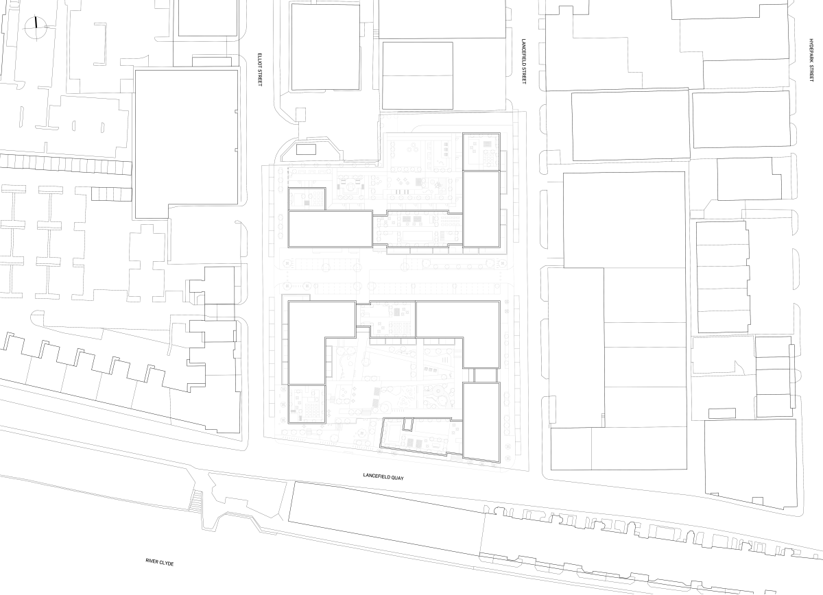 The Lancefield Quay Masterplan is a vibrant residential-led mixed-use neighbourhood which promotes community and activation of the River Clyde Corridor. The masterplan forms two central courtyards, one which is more public in nature, and opens out towards the river Clyde and the second which is more private. Both are linked at ground level, and present inclusive public realm and improved permeability through the site.