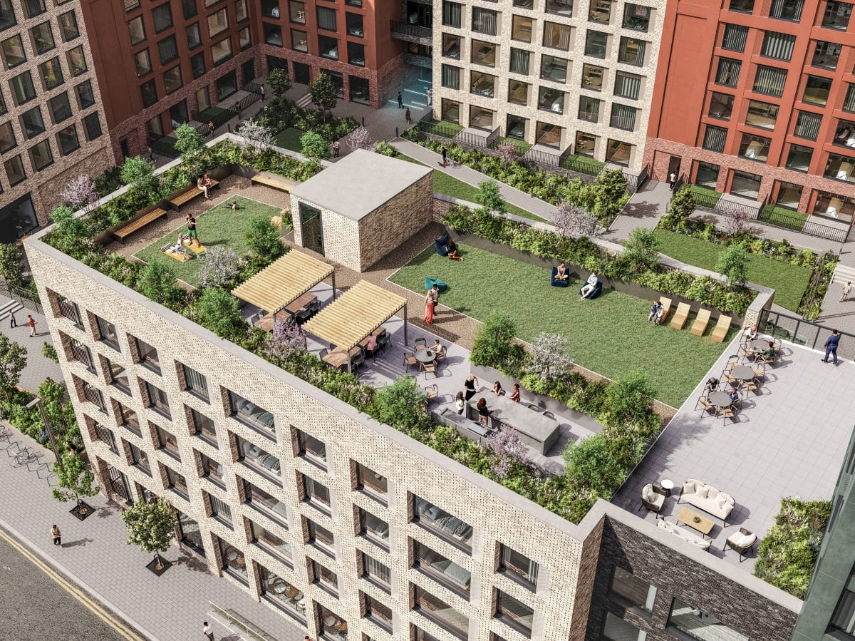 The massing, which ranges from 5 to 22 storeys, was developed in response to the contextual constraints, microclimatic considerations, planning policy, whilst achieving a density of development which met the client brief. It creates a series of activated roof top gardens with views across the River Clyde and the wider cityscape. Incorporating a mix of public, semi-public, and private garden areas to create a hybrid of activity and interaction.